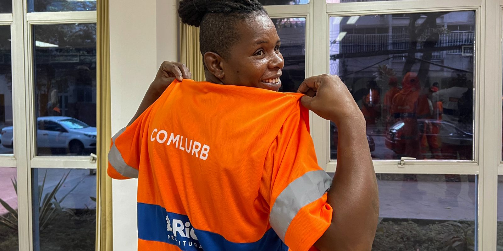 O uniforme mantém a logo da Comlurb e as faixas reflexivas, só muda o tecido, o mesmo utilizado nas blusas usadas pelos garis durante as Olimpíadas do Rio, em 2016.